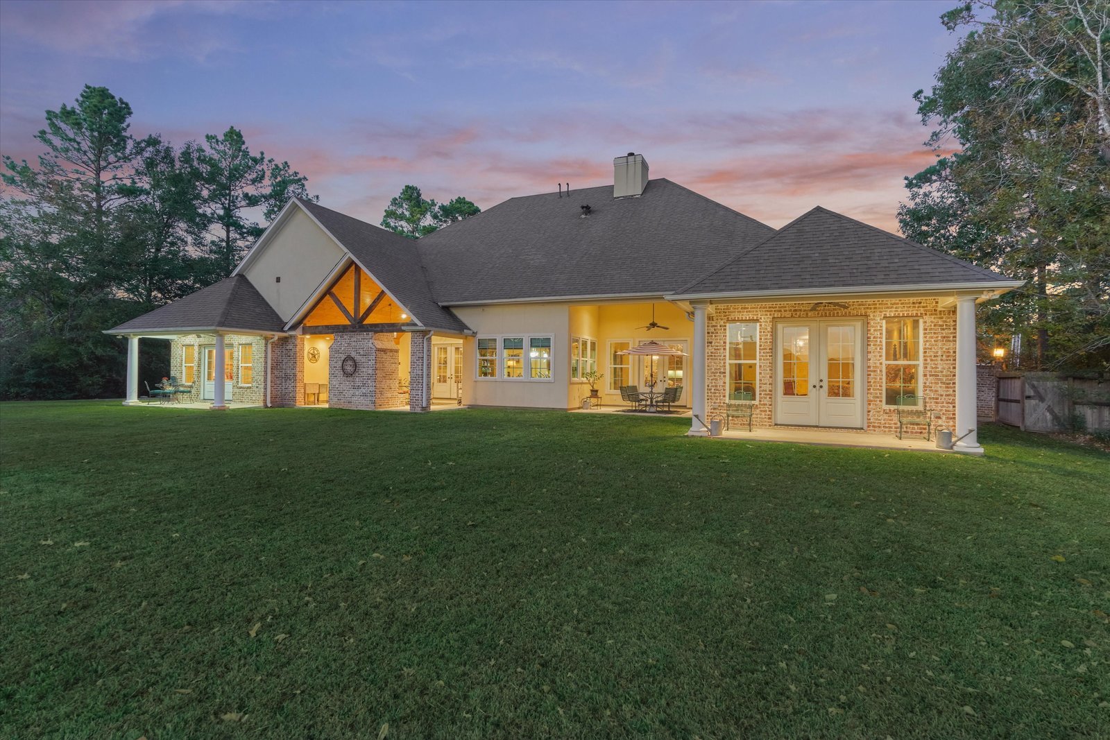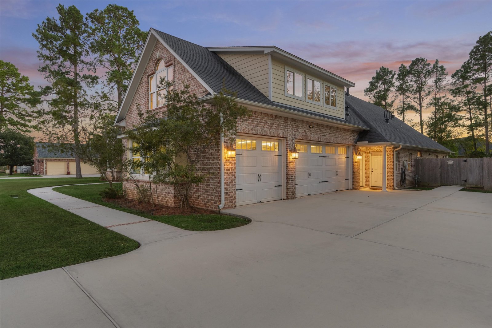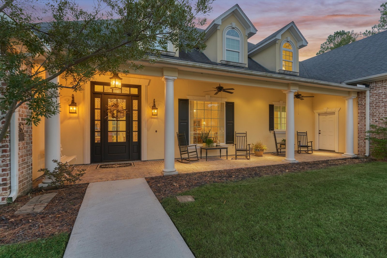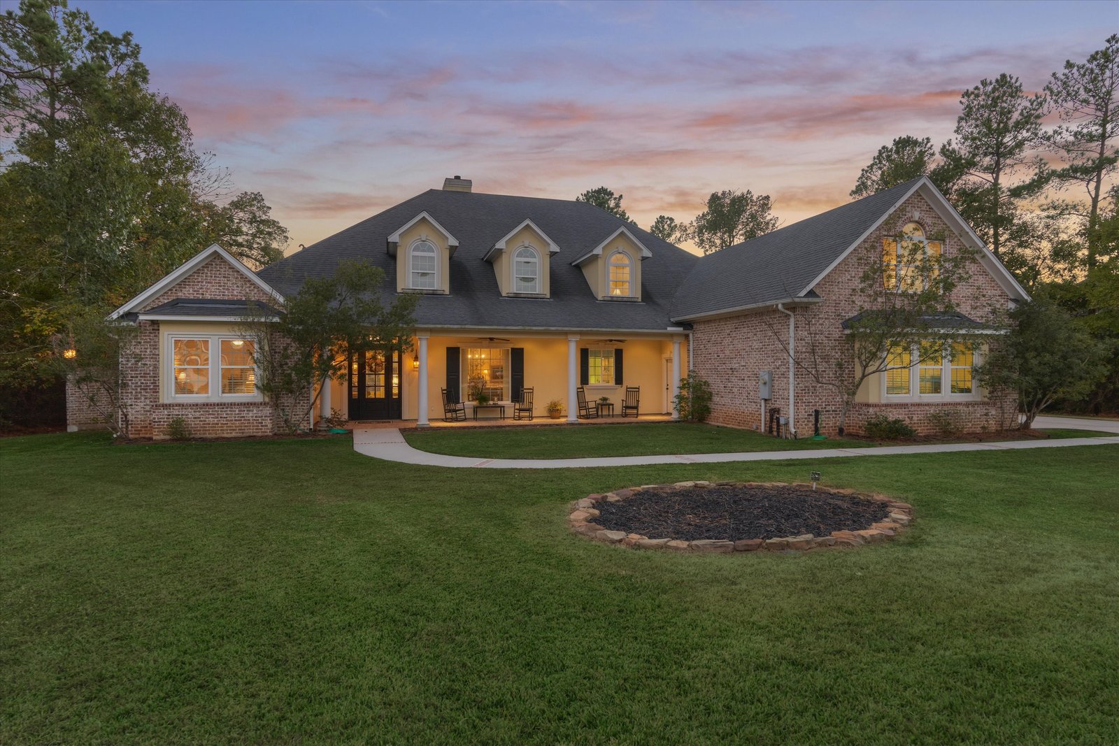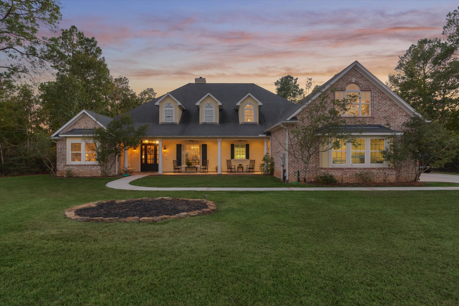 Step into timeless Southern grandeur at this one-of-a-kind residence, inspired by Jefferson Davis's historic Virginia home. Spanning two lots on a full acre, this estate offers 5 bedrooms, 5.5 baths and a 3 car garage, including a unique suite w/private kitchen, blending architectural elegance with modern, multi-generational living. Custom light fixtures, period-inspired wallpapers, rich colors, layered textures, and detailed millwork showcase the artistry behind this remarkable build. Modern conveniences include ensuite baths for each bedroom, two dishwashers, two washer/dryer stations, tankless water heaters, PEX plumbing and foam insulation. Outdoors, step out to a covered porch w/ a vaulted, wood paneled ceiling, Summer kitchen and cozy fireplace, driveway & security lighting and a gate leading to the community pond. This estate is a rare opportunity to own a true architectural treasure- where history inspired design meets modern comfort in flawless harmony.