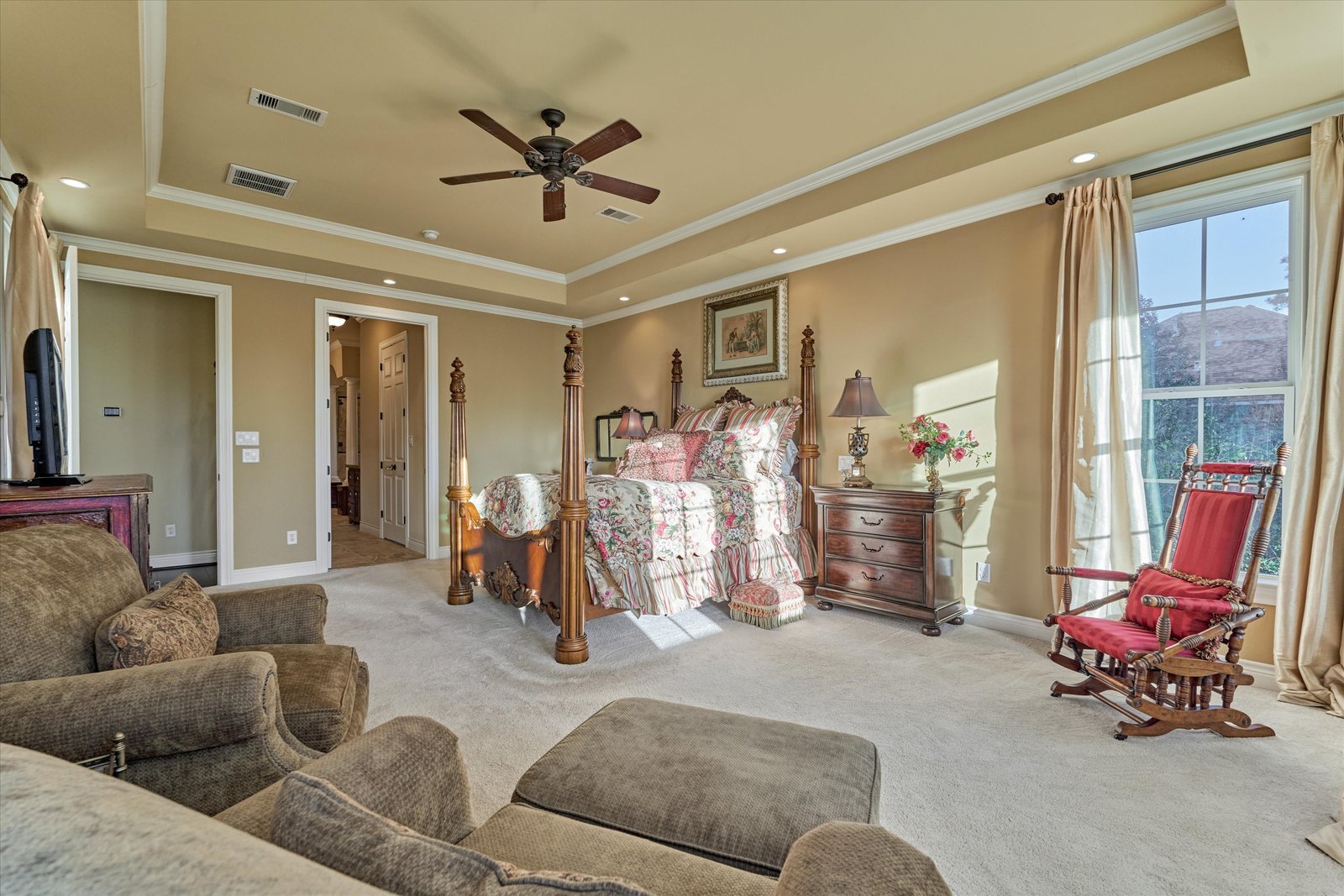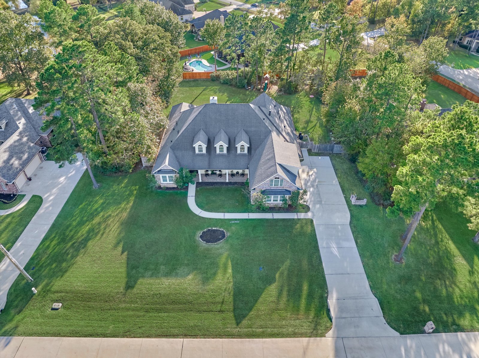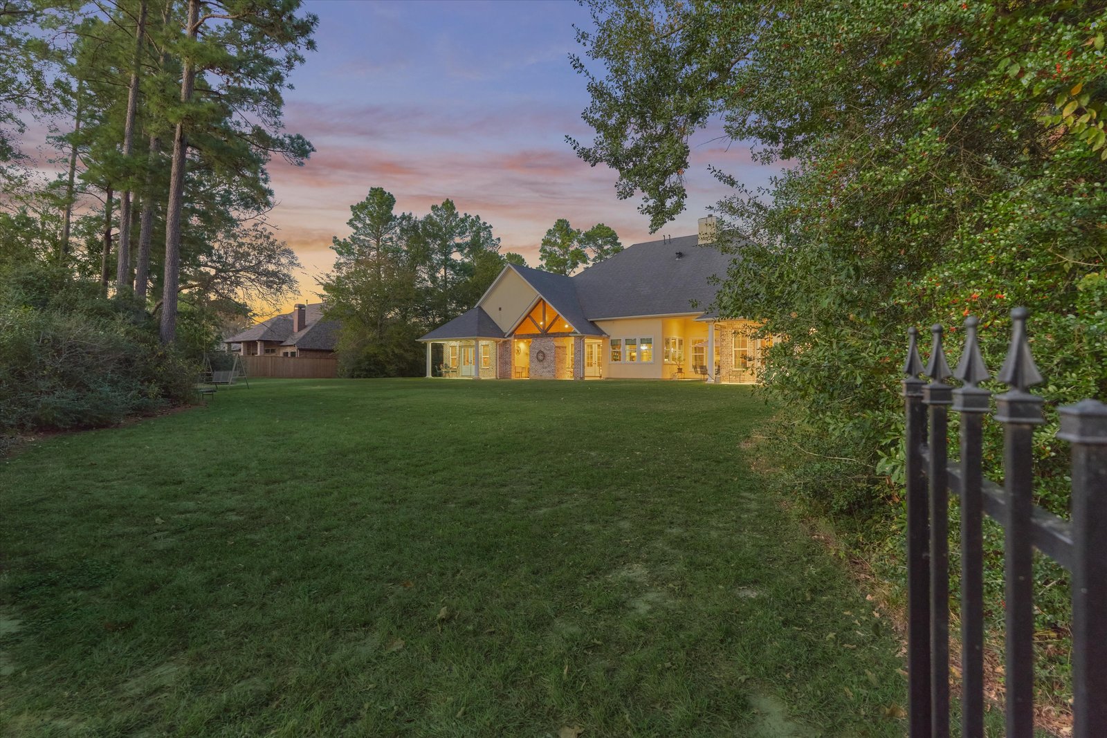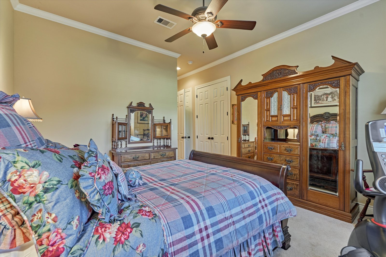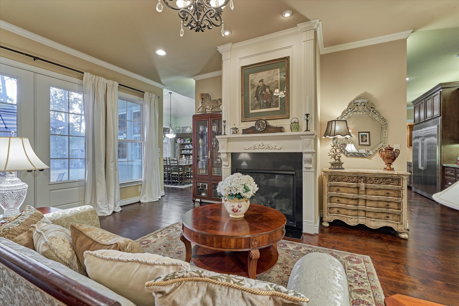 Step into timeless Southern grandeur at this one-of-a-kind residence, inspired by Jefferson Davis's historic Virginia home. Spanning two lots on a full acre, this estate offers 5 bedrooms, 5.5 baths and a 3 car garage, including a unique suite w/private kitchen, blending architectural elegance with modern, multi-generational living. Custom light fixtures, period-inspired wallpapers, rich colors, layered textures, and detailed millwork showcase the artistry behind this remarkable build. Modern conveniences include ensuite baths for each bedroom, two dishwashers, two washer/dryer stations, tankless water heaters, PEX plumbing and foam insulation. Outdoors, step out to a covered porch w/ a vaulted, wood paneled ceiling, Summer kitchen and cozy fireplace, driveway & security lighting and a gate leading to the community pond. This estate is a rare opportunity to own a true architectural treasure- where history inspired design meets modern comfort in flawless harmony.