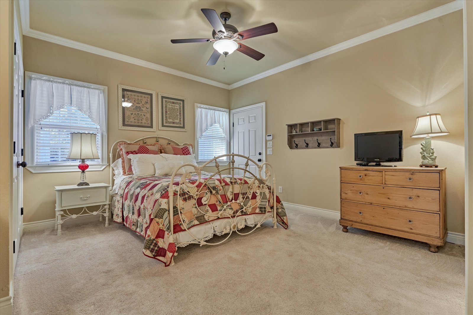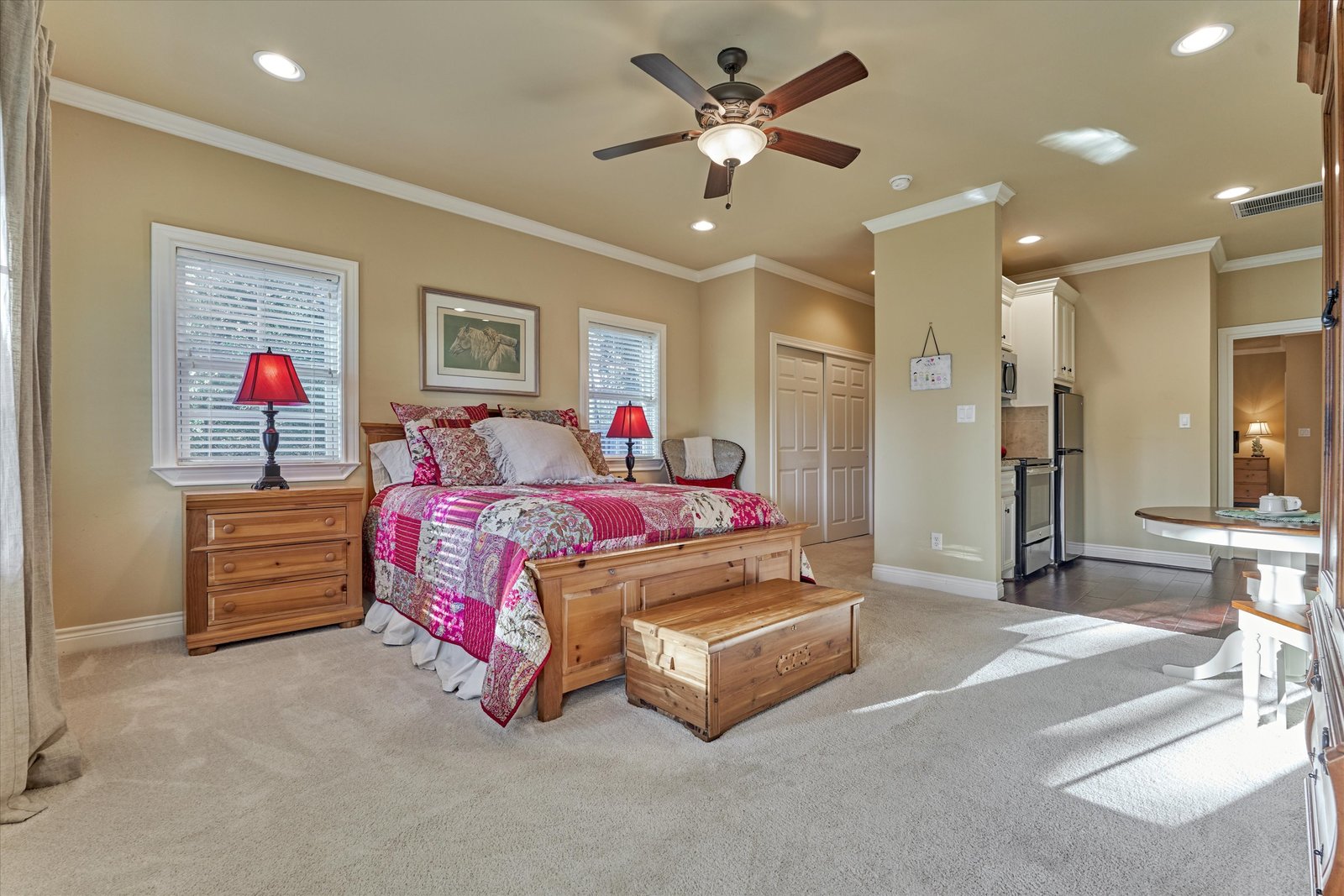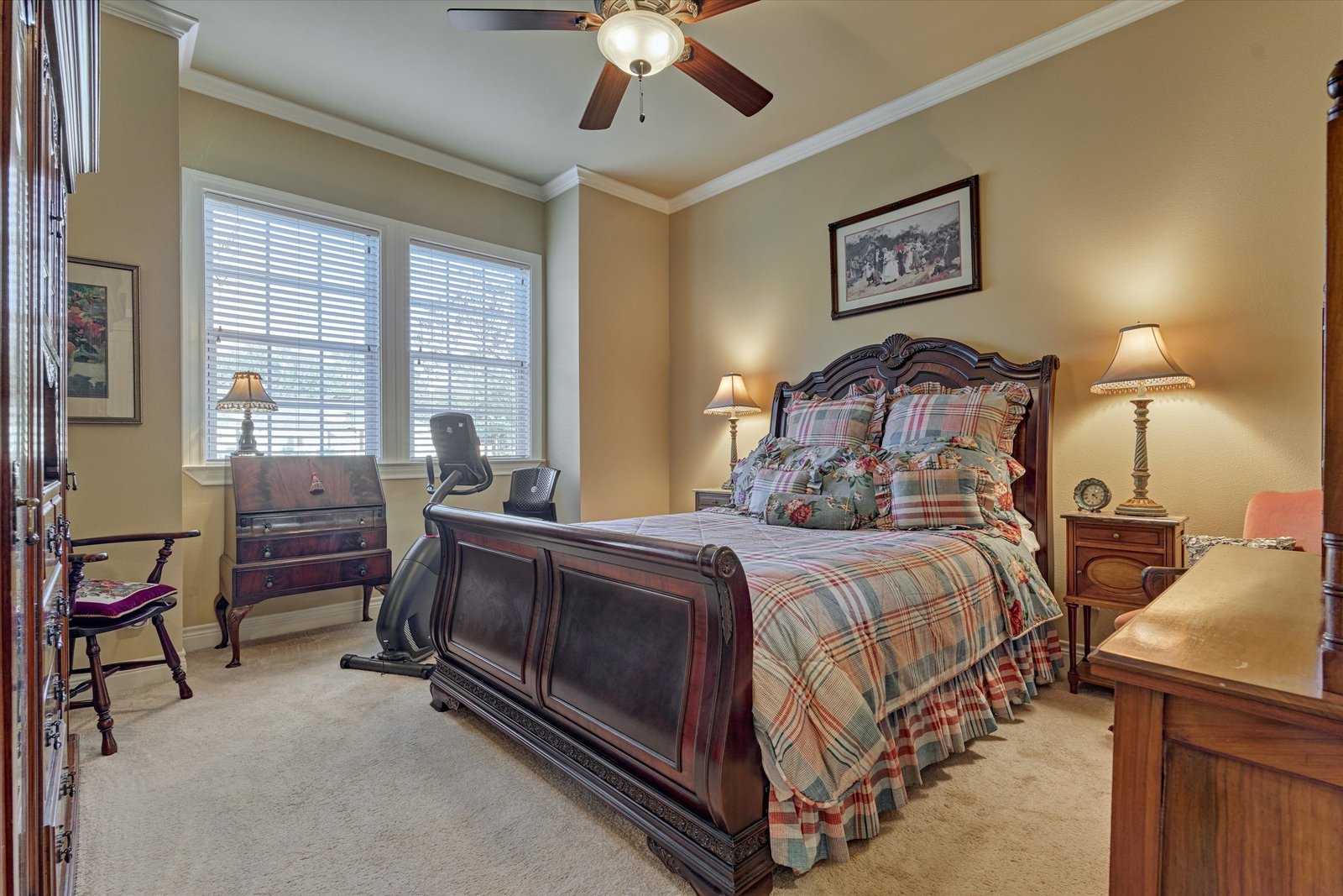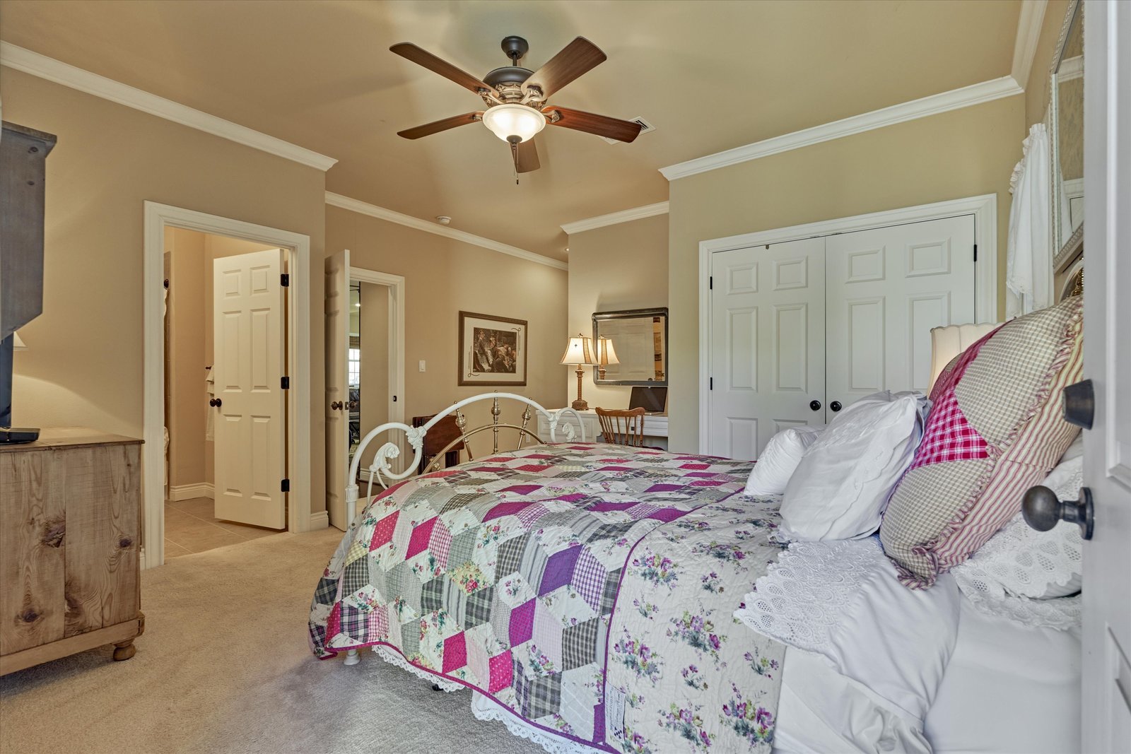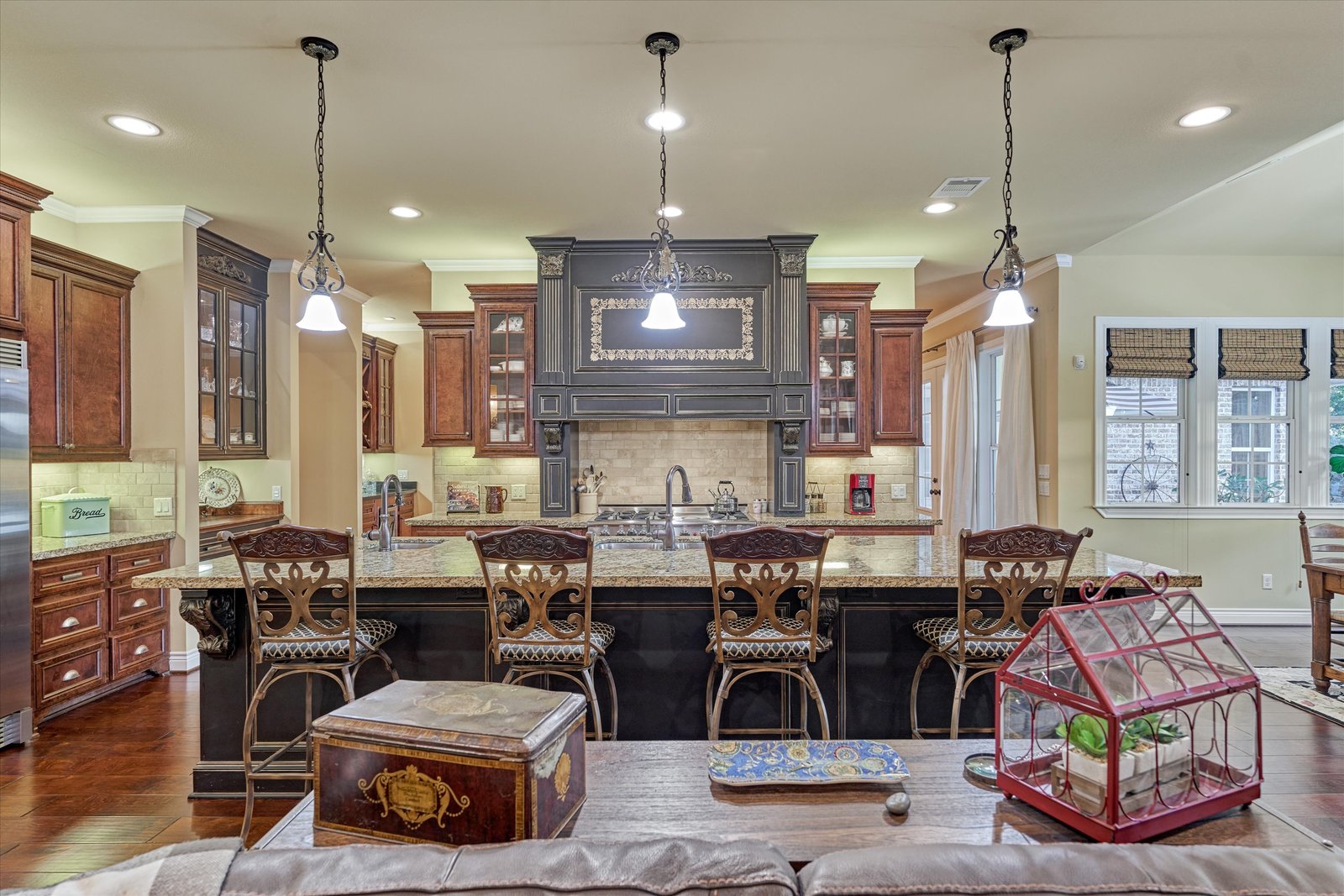 Step into timeless Southern grandeur at this one-of-a-kind residence, inspired by Jefferson Davis's historic Virginia home. Spanning two lots on a full acre, this estate offers 5 bedrooms, 5.5 baths and a 3 car garage, including a unique suite w/private kitchen, blending architectural elegance with modern, multi-generational living. Custom light fixtures, period-inspired wallpapers, rich colors, layered textures, and detailed millwork showcase the artistry behind this remarkable build. Modern conveniences include ensuite baths for each bedroom, two dishwashers, two washer/dryer stations, tankless water heaters, PEX plumbing and foam insulation. Outdoors, step out to a covered porch w/ a vaulted, wood paneled ceiling, Summer kitchen and cozy fireplace, driveway & security lighting and a gate leading to the community pond. This estate is a rare opportunity to own a true architectural treasure- where history inspired design meets modern comfort in flawless harmony.
