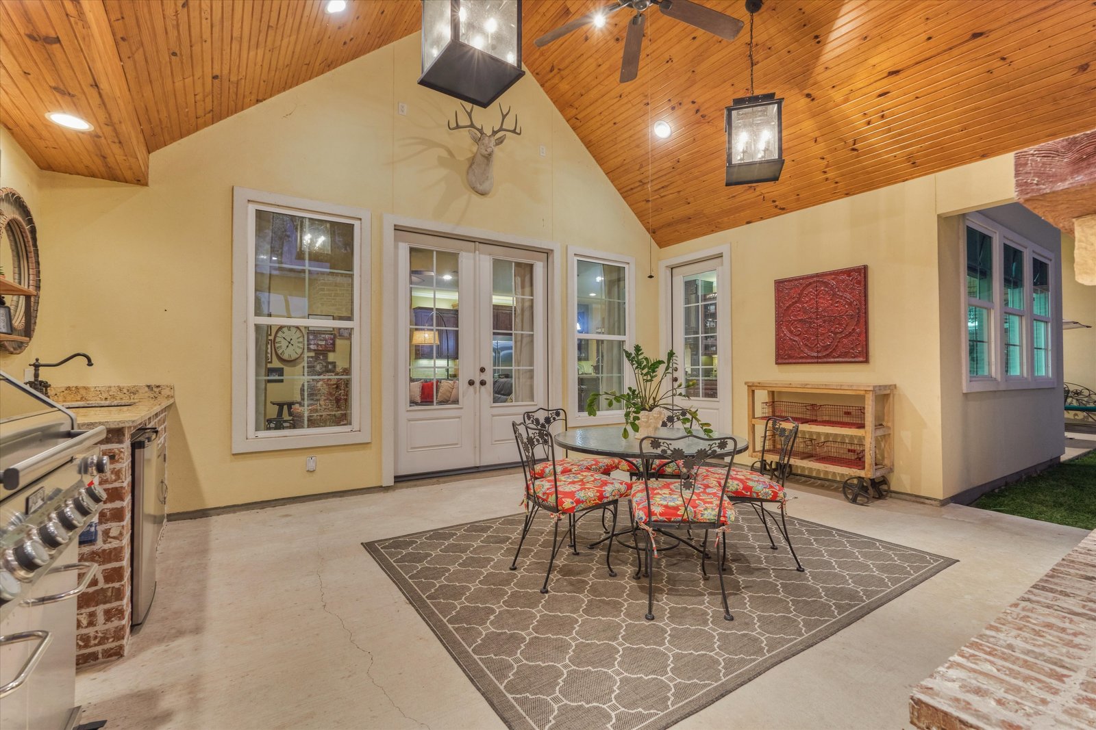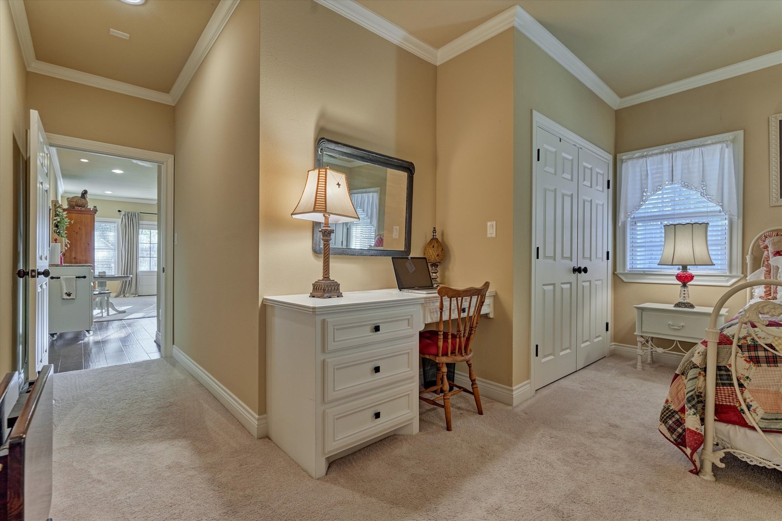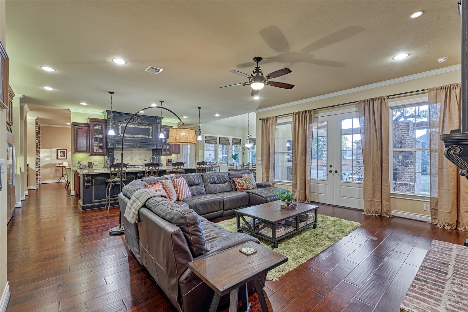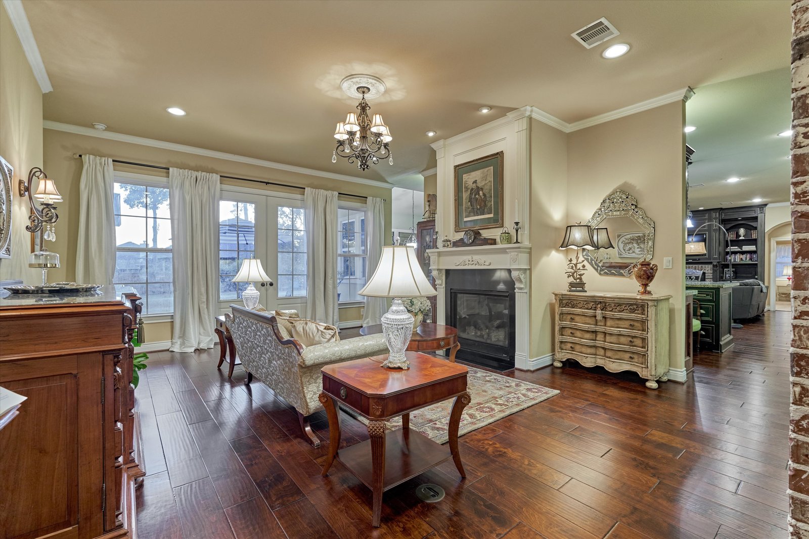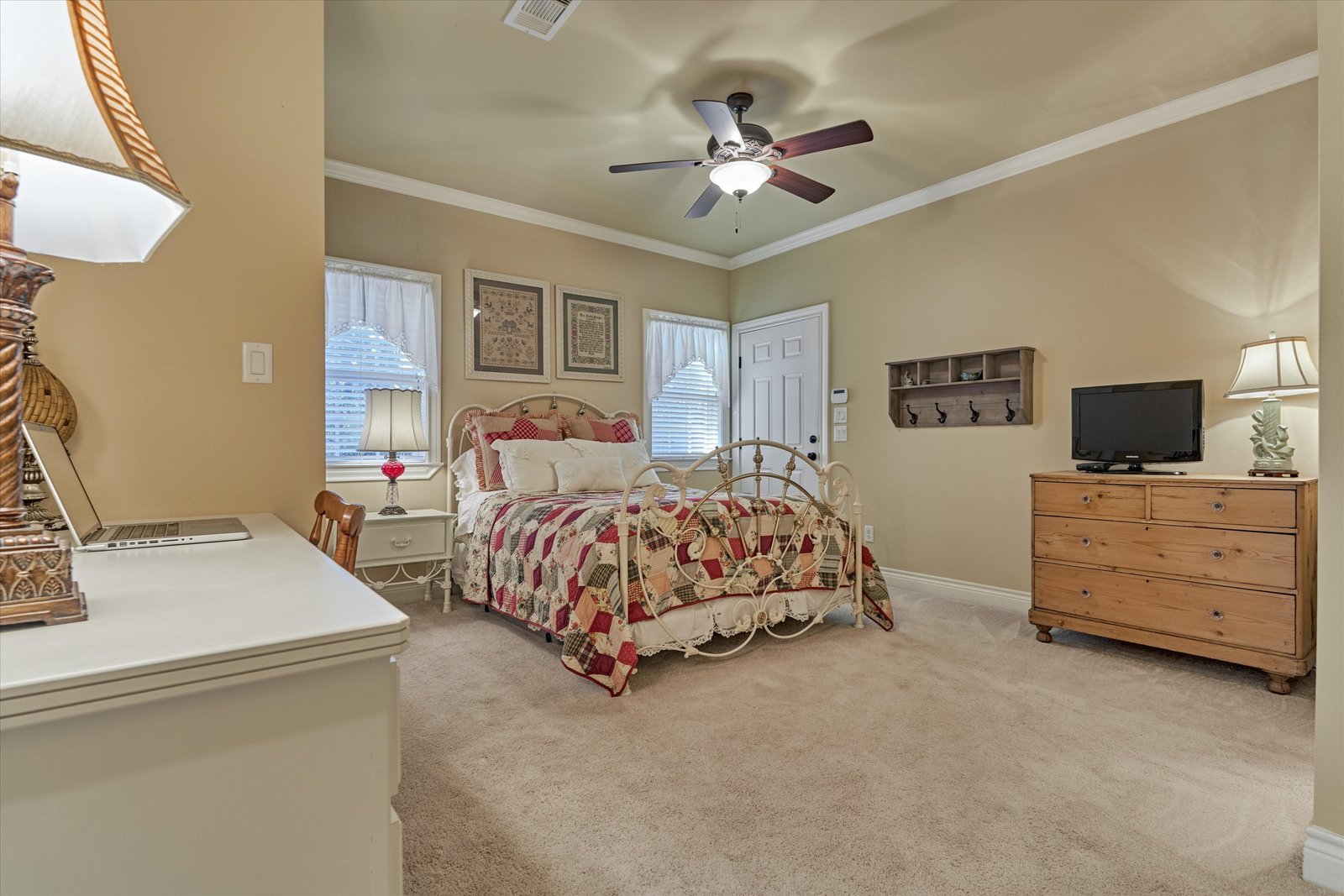 Step into timeless Southern grandeur at this one-of-a-kind residence, inspired by Jefferson Davis's historic Virginia home. Spanning two lots on a full acre, this estate offers 5 bedrooms, 5.5 baths and a 3 car garage, including a unique suite w/private kitchen, blending architectural elegance with modern, multi-generational living. Custom light fixtures, period-inspired wallpapers, rich colors, layered textures, and detailed millwork showcase the artistry behind this remarkable build. Modern conveniences include ensuite baths for each bedroom, two dishwashers, two washer/dryer stations, tankless water heaters, PEX plumbing and foam insulation. Outdoors, step out to a covered porch w/ a vaulted, wood paneled ceiling, Summer kitchen and cozy fireplace, driveway & security lighting and a gate leading to the community pond. This estate is a rare opportunity to own a true architectural treasure- where history inspired design meets modern comfort in flawless harmony.