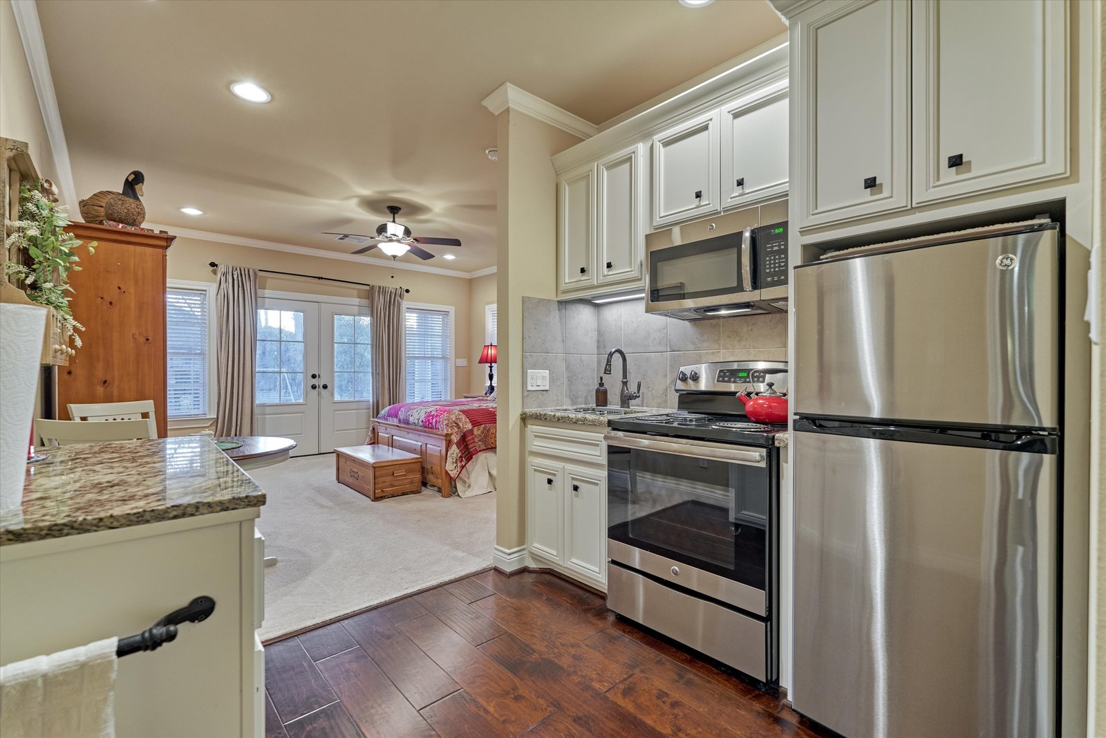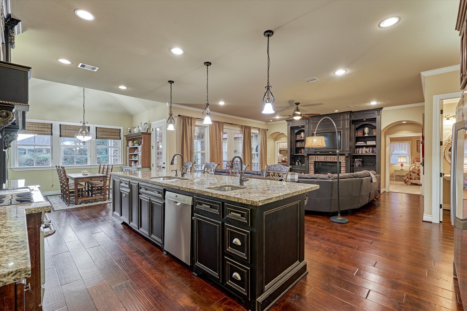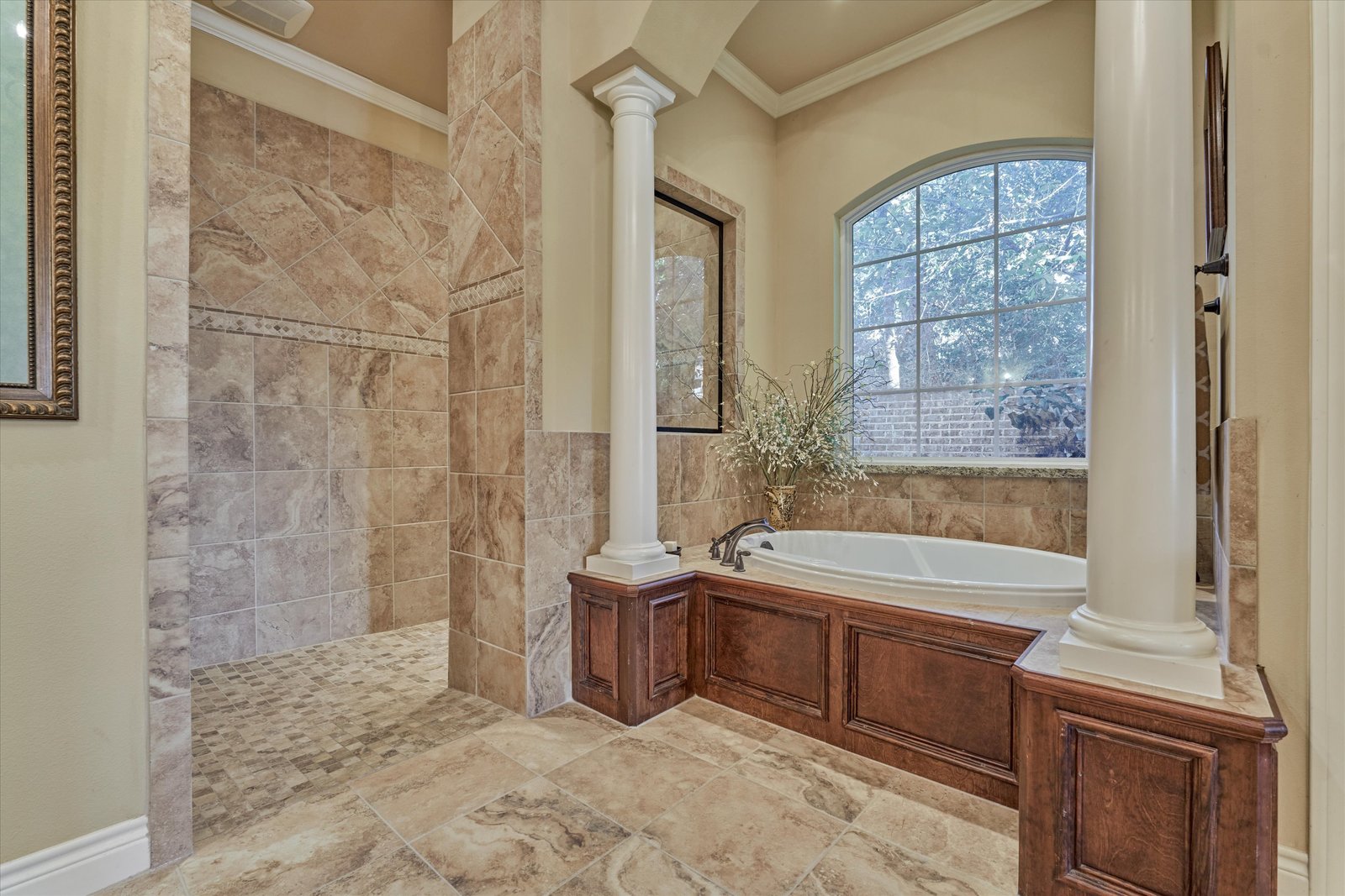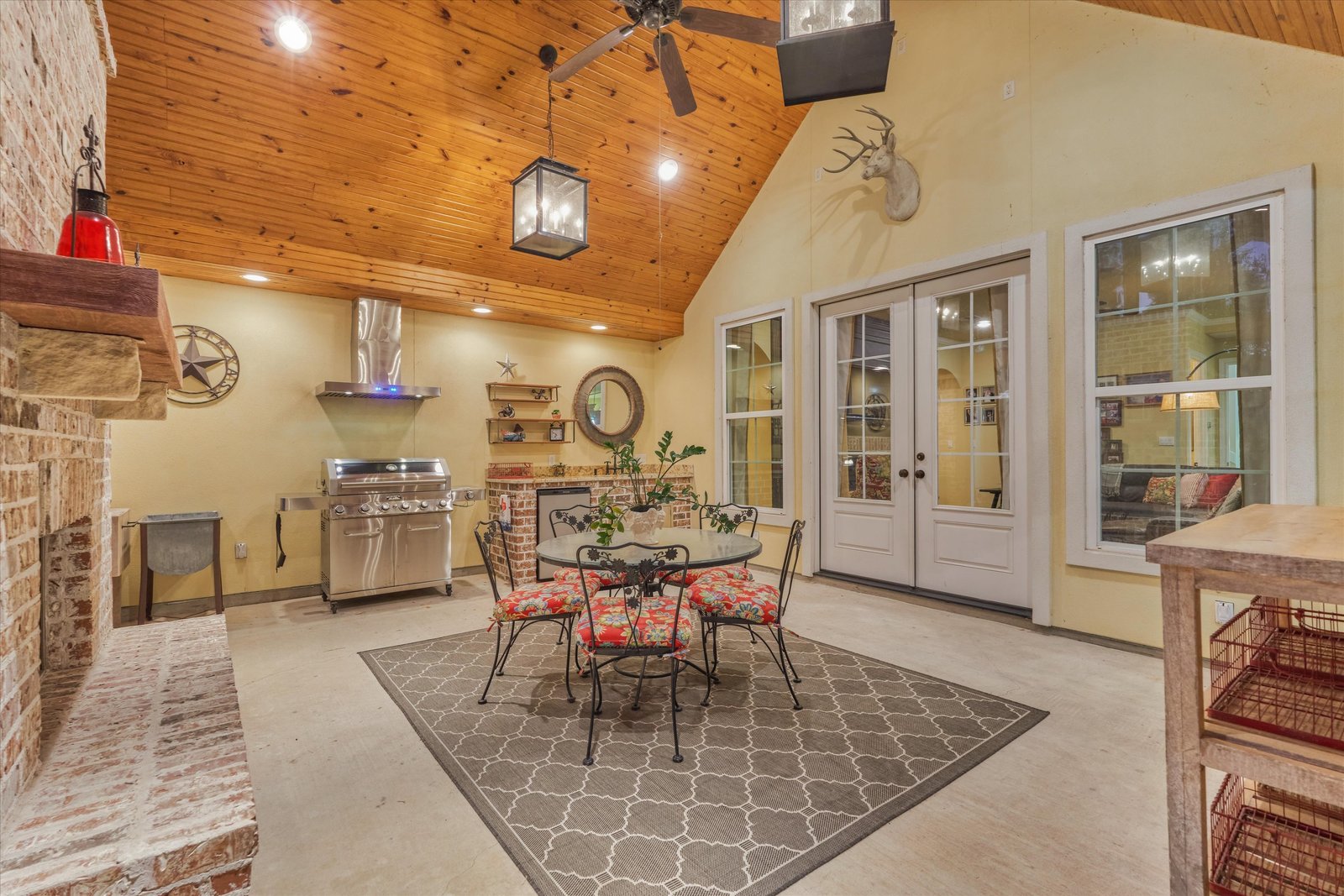 Step into timeless Southern grandeur at this one-of-a-kind residence, inspired by Jefferson Davis's historic Virginia home. Spanning two lots on a full acre, this estate offers 5 bedrooms, 5.5 baths and a 3 car garage, including a unique suite w/private kitchen, blending architectural elegance with modern, multi-generational living. Custom light fixtures, period-inspired wallpapers, rich colors, layered textures, and detailed millwork showcase the artistry behind this remarkable build. Modern conveniences include ensuite baths for each bedroom, two dishwashers, two washer/dryer stations, tankless water heaters, PEX plumbing and foam insulation. Outdoors, step out to a covered porch w/ a vaulted, wood paneled ceiling, Summer kitchen and cozy fireplace, driveway & security lighting and a gate leading to the community pond. This estate is a rare opportunity to own a true architectural treasure- where history inspired design meets modern comfort in flawless harmony.