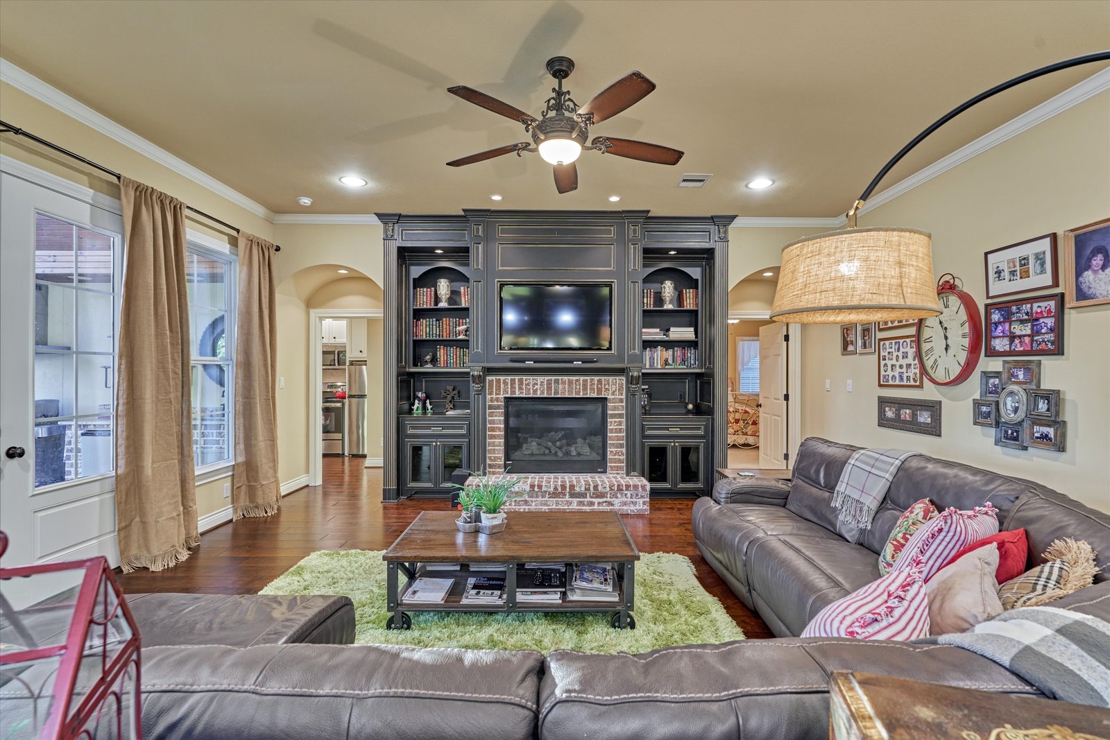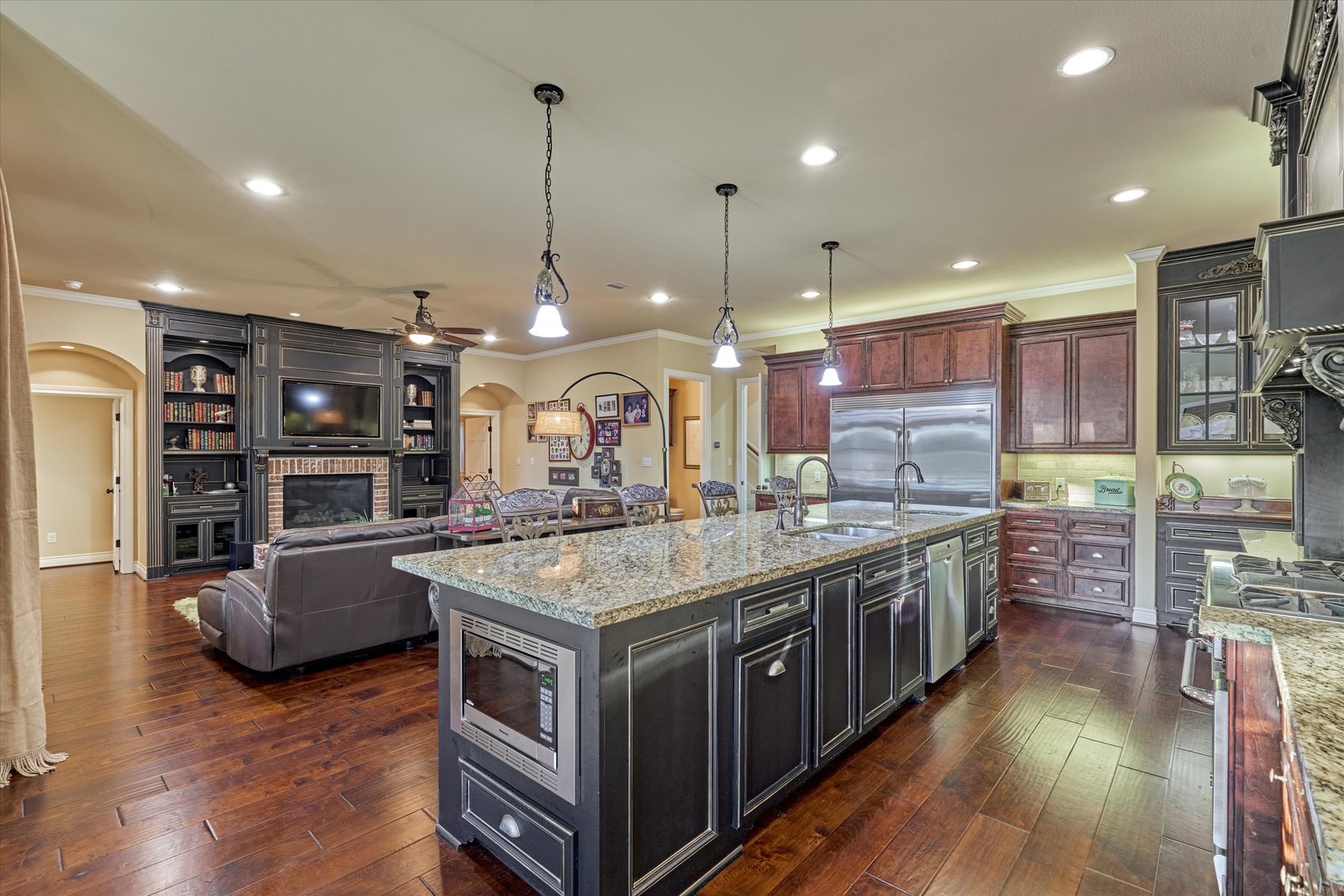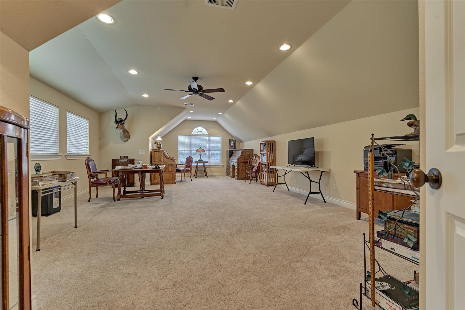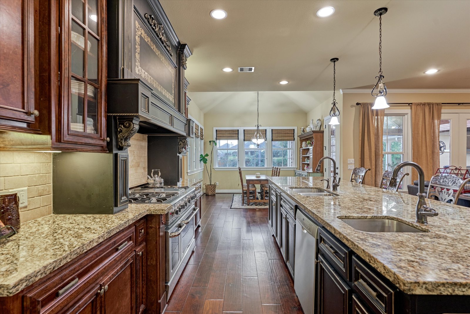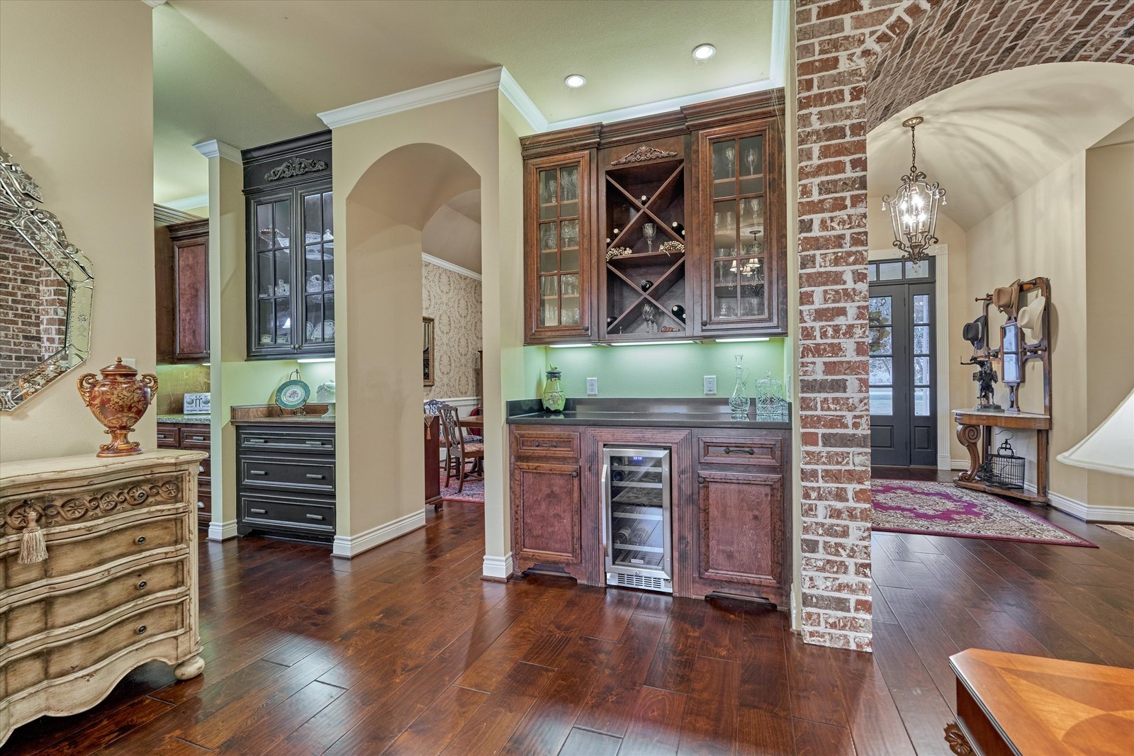 Step into timeless Southern grandeur at this one-of-a-kind residence, inspired by Jefferson Davis's historic Virginia home. Spanning two lots on a full acre, this estate offers 5 bedrooms, 5.5 baths and a 3 car garage, including a unique suite w/private kitchen, blending architectural elegance with modern, multi-generational living. Custom light fixtures, period-inspired wallpapers, rich colors, layered textures, and detailed millwork showcase the artistry behind this remarkable build. Modern conveniences include ensuite baths for each bedroom, two dishwashers, two washer/dryer stations, tankless water heaters, PEX plumbing and foam insulation. Outdoors, step out to a covered porch w/ a vaulted, wood paneled ceiling, Summer kitchen and cozy fireplace, driveway & security lighting and a gate leading to the community pond. This estate is a rare opportunity to own a true architectural treasure- where history inspired design meets modern comfort in flawless harmony.